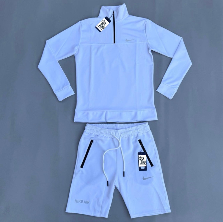 ست سویشرت نیم زیپ شلوارک نایک سفید